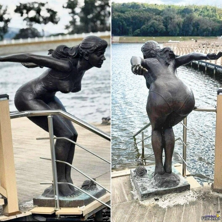 На Старом озере в городе Кисловодск поставили скульптуру ныряльщицы, которая замерла перед прыжком. Местные уже оценили позу, формы, готовы дополнить композицию, пристроившись для фотографий сзади.