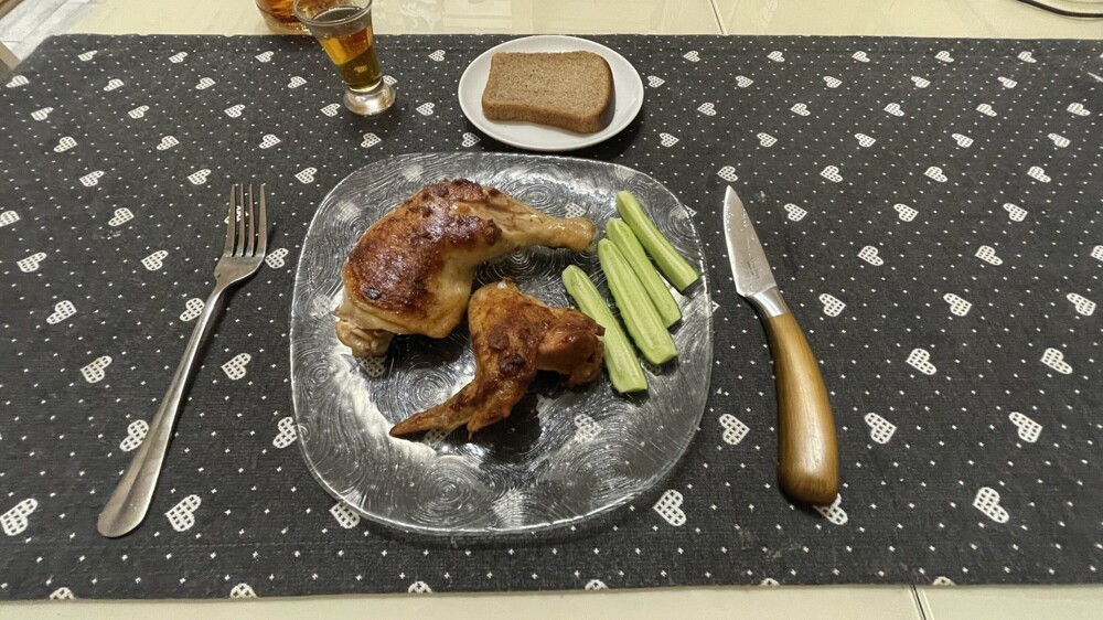 Морковку только разок куснула и выбросила, то ли морковка не вкусная, то ли "зайка" зажравшаяся.