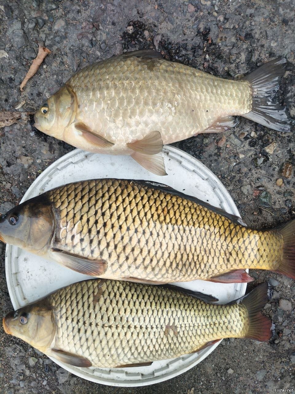 Разницу в цвете, форме чешуи, форме тела вообще не воспринимаете? Карась и два карпа. И карась, к тому же серебристый, то есть вид такой - серебристый карась.
