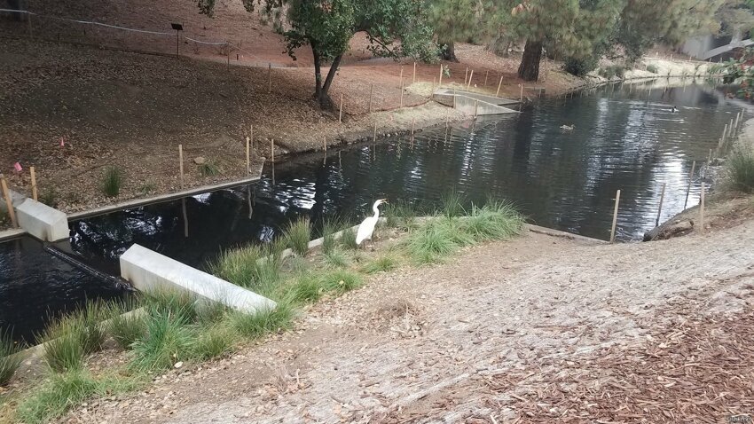 местные цапли постоянно дежурят по берегам - вылавливают рыбок.