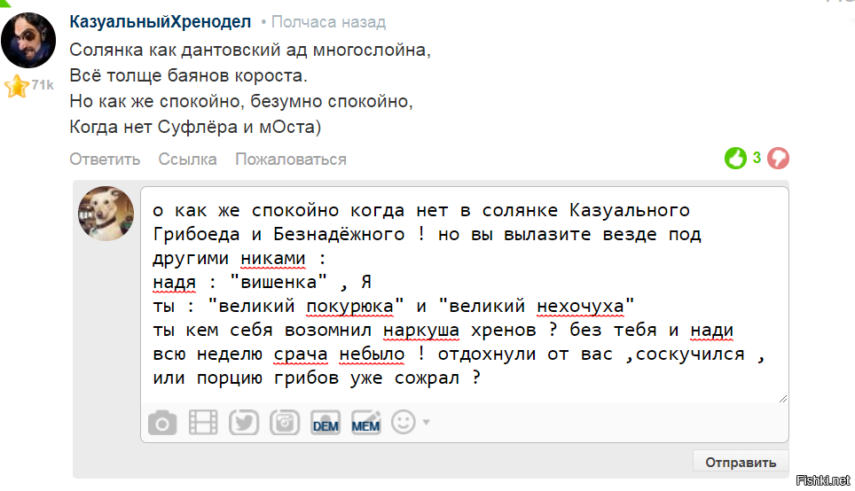 слушай , Козуальный Грибоед ! срач ТЫ пытаешься развести , когда ты последний раз видел мой негативный коммент ? ась ?