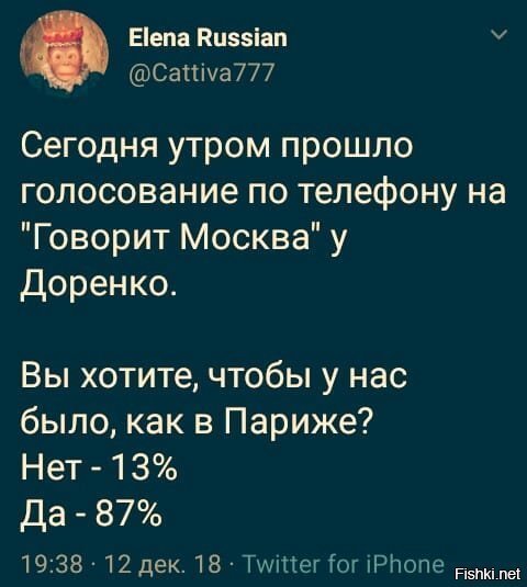 "Ребята" активно отстаивали свои права и поэтому достигли результата. Согласен. Но у нас "парижский" вариант не может случиться. Сожженными автомобилями и покрышками не закончится. Увы! Или Новочеркасск (1962г.) или опять Гражданская война (1917-1922гг.)