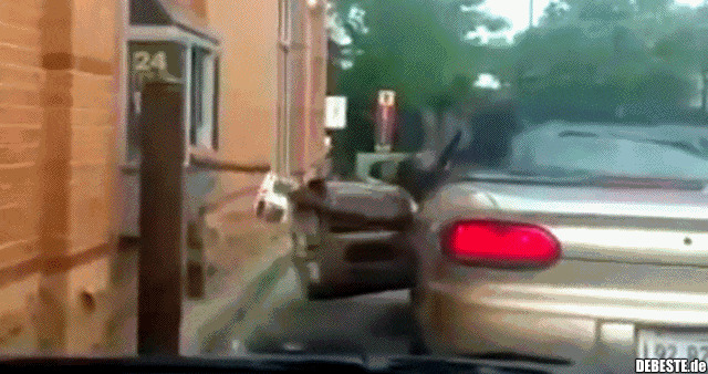 Он едва не совершил наезд на меня. По безответственной манере езды я решил, что за рулём находится мой знакомый ##### и поприветствовал его, помахав рукой с поднятым средним пальцем, как это принято в нашей компании. Автомобиль остановился и я подбежал к нему, чтобы поздороваться с #####, крича «сюда иди, ###», как это тоже принято в нашей компании.