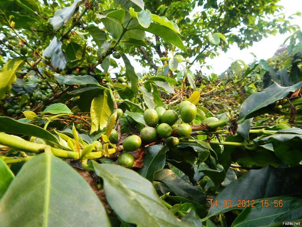 Деревце. Настоящее кофейное деревце. Уже семь лет растёт. В прошлом году был первый урожай - с десяток ягод. В этом уже более приличный, горсти на две наберётся.