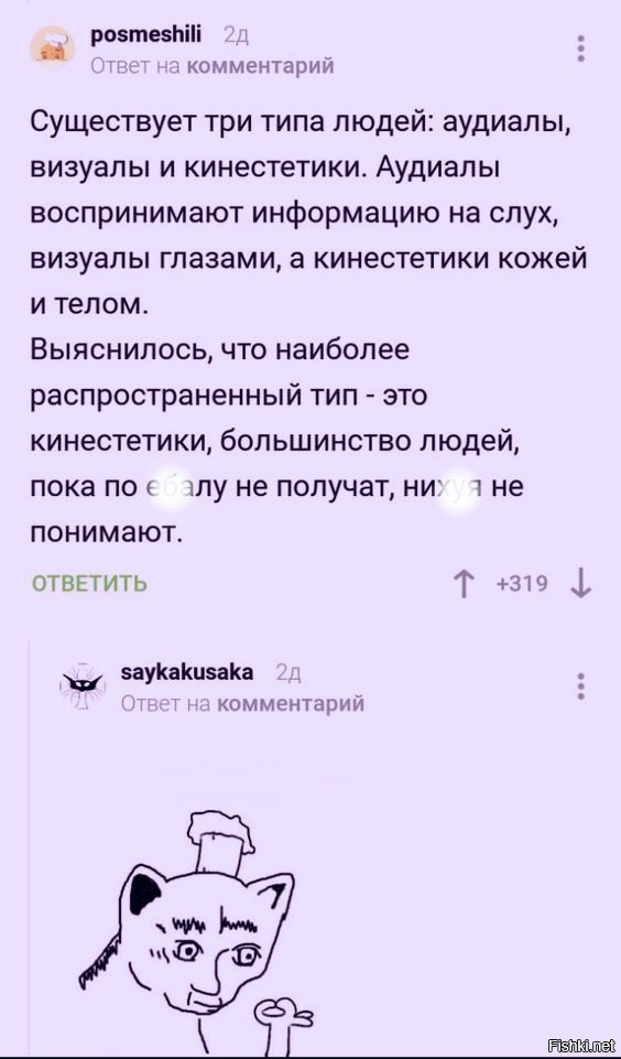 мне вот интересТно, зачем постить одно и тоже. кто-то ради кармы, кто-то по незнанию. даже не знаю как оформить мысль, без матов. ну неужели все читают подобные сайты как пикабу, яплакал, васинет, чёт там далее список большой. смысл выдёргивать с одного сайта и постить в другом, ради лайков? не удивлюсь, если у них на странице (фасБук, инстук, и т.д. тоже-самое) ничего оригинального, только лайки. фу, противно. (извините, накипело) сам редко постю, вот увижу что-то достойное, чем стоит поделиться, то да. ну или улыбнуть