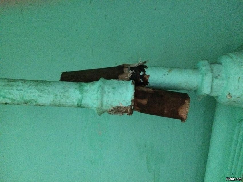 ночью некто срывает трубу отопления в доме на ул. Екатерины Будановой. Жители вызывают аварийку.