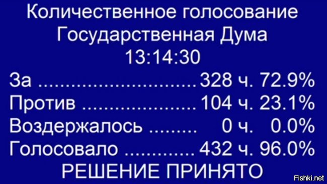 Не совсем понятно, где смеяться... Полный состав Думы - 450 человек. Голосовавших 432 человека - 96% от списочного состава.