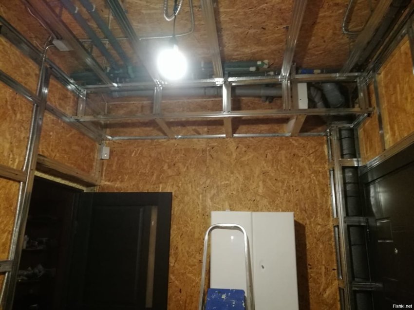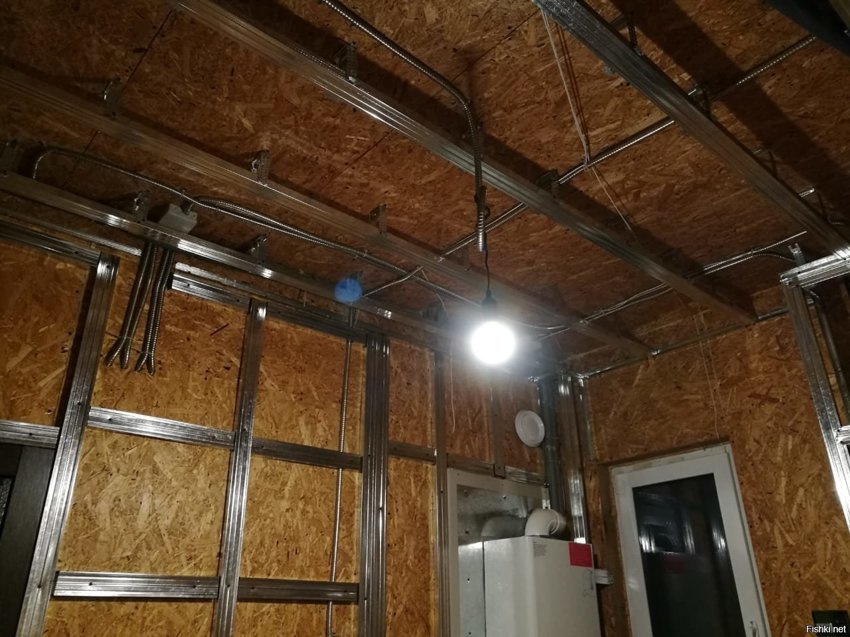 Если это котельная, зачем её обшивать (каркас для этого?). А если придётся что-то переделать или отремонтировать? У меня сосед так зашил всё, а потом крыса ему канализационную трубу прогрызла и узнал он об этом очень не скоро...
