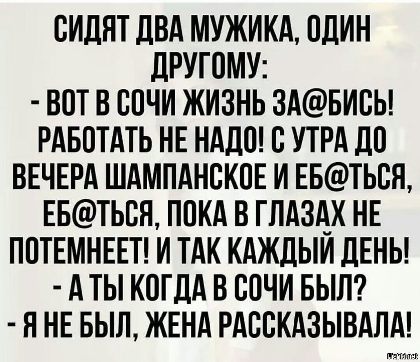 Два идиота сидят в дурке и возник,у них спор.Один говорит что на улице день,в а второй орет что ночь,первый говорит вон солнце же светит,а второй рядит что на небе луна.Короче спорили часов 5,потом устали.Вдруг на одного нашло прозрение,он и говорит,а давай в окошко выглянем и кто под ни будет проходить,у того и узнаем что на небе(солнце или луна).Ну выглядывают смотрят мужик идет,они ему -мужик что сейчас на улице день или ночь:-Да хрен его знает,яж не местный.
