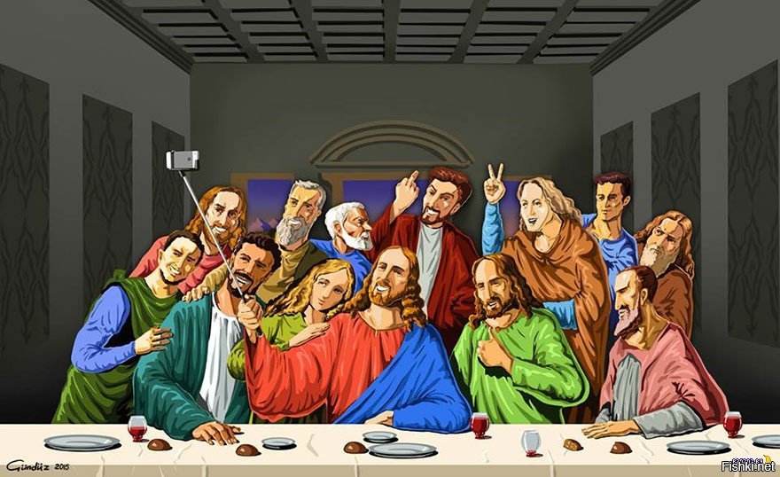 К Папе Римскому заходит секретарь и говорит: Ваше Преосвященство! В приемной сидит старый еврей, ну очень старый и сидит уже 2 недели… не уходит, просит аудиенции. Ну, пусть зайдет. Заходит очень старый, прям таки допотопный еврей... Папа: Чем могу Вам помочь? Старый еврей достает из лапсердака картину «Tайная вечеря» показывает Папе и спрашивает: Это Ваши люди? Папа гордо отвечает: Наши! А почему Вы спрашиваете? Старый еврей: они за стол не рассчитались …