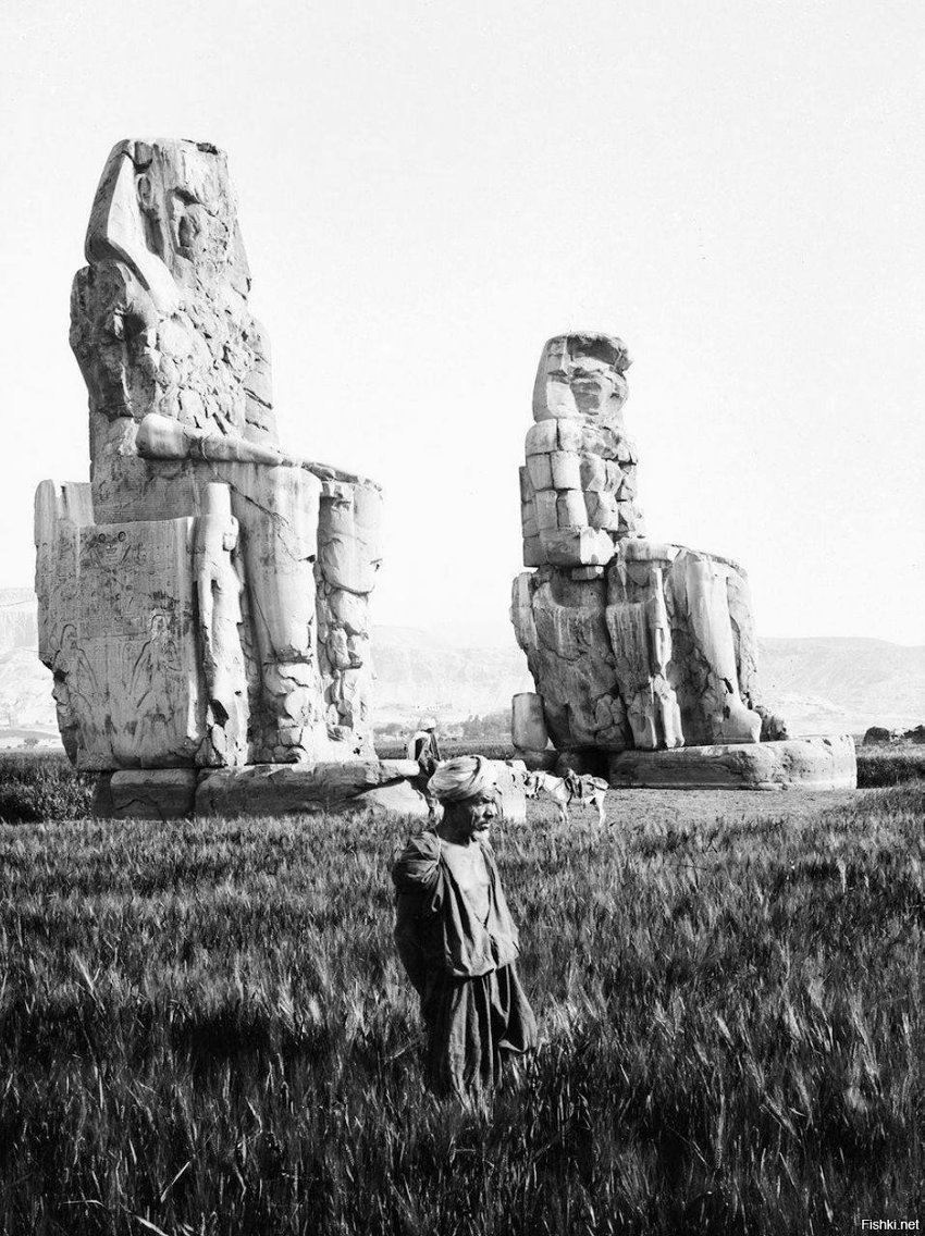 Колоссы Мемнона - гигантские каменные статуи фараона Аменхотепа III. Египет, 1910 год.