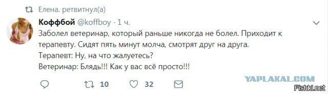 На прием в поликлинику приходит ветеринар. Врач ему: