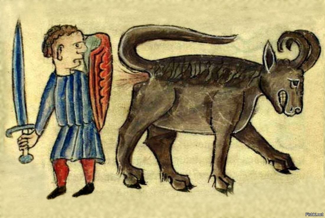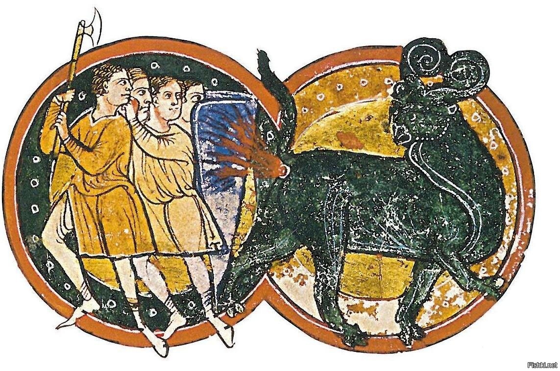 Бонакон-мифическое животное в виде быка с завёрнутыми внутрь рогами,который з...