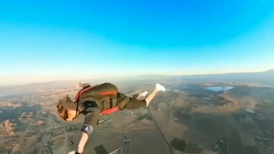 Прыжок с воздушного шара. Камера эффектно снимает свободное падение!)