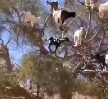 Коз привлекают плоды арганового дерева, и с помощью своих альпинистских способностей они до них добираются.