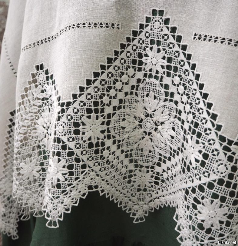 Традиционный горьковский гипюр включает около пятидесяти элементов вышивки, у каждого из которых свое название ромашка, бобурочка. А от другого гипюра (того же ивановского) наш отличается преобладанием растительного орнамента веточки, цветочки всякие (у них же геометрические формы) и большей легкостью и прозрачностью (у нас рефеть то есть клеточка 5 миллиметров, у них всего 2 3). Не зря горьковский гипюр сами мастера прозвали воздушным белопенным...