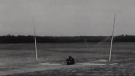 Демонстрация спасательного полёта для подбора людей без посадки с помощью "скайхука".