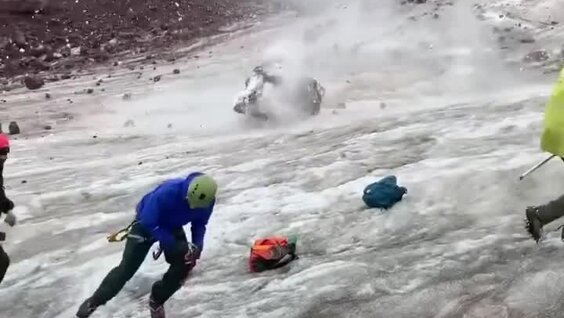 Эльбрус. От таяния льда сошел большой камень на склоне.