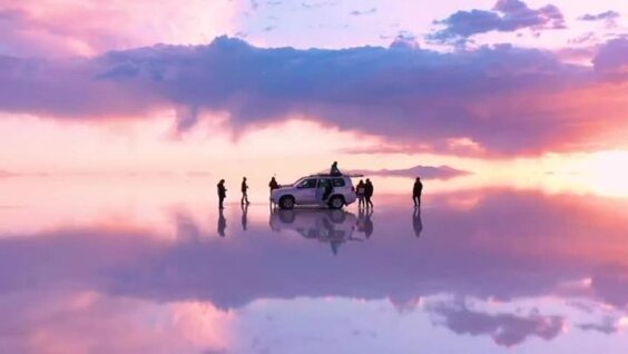 Соляное озеро Уюни находится в Боливии и образовалось в результате пересыхания моря, которое раньше располагалось на этом месте.