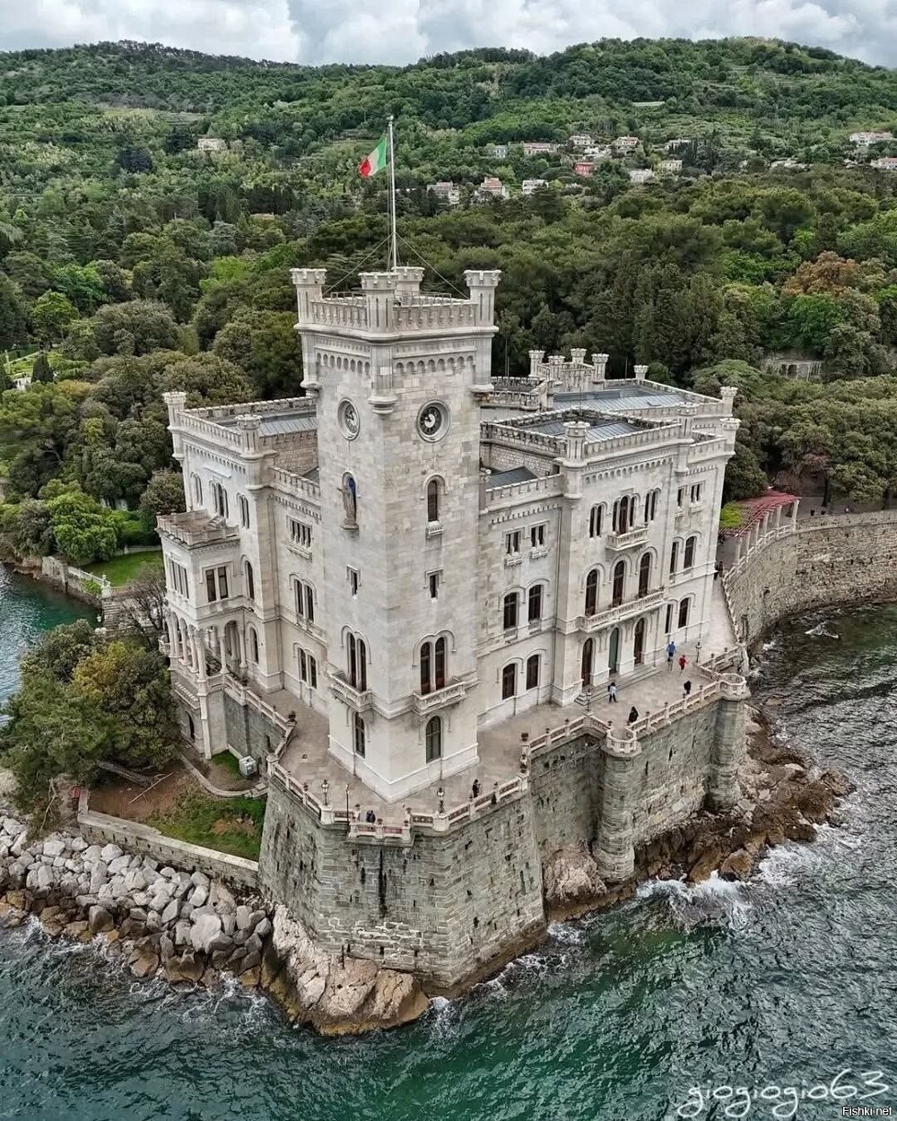 Замок в средневековом шотландском стиле, построенный на выдающейся в Адриатическое море скале в окрестностях Триеста по проекту архитектора Карла Юнкера в 1856-1860 годах. Заказчиками строительства и хозяевами замка были австрийский эрцгерцог Максимилиан и его супруга, Шарлотта Бельгийская. В настоящее время открыт для посещения туристами. На прилегающей территории площадью 22 гектара разбит сад экзотических растений.
