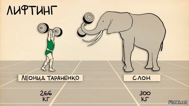 относительно подъема тяжестей аналогия неуместна имхо. Необходимо смотреть относительно массы собственного тела. Слон весом 2 тонны способный поднять 0,3 тонны - слабак! Муравей в разы сильнее