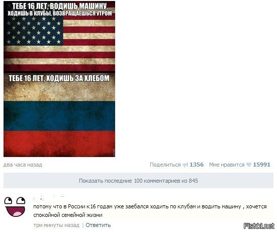 Автор насмотрелся американских комедий и не знает, что бухло в Штатах продается с 21 года, а за привычный в нашем понимании "флирт" с девченками можно хапнуть обвинения в домогательстве и перспективу суда с реальным сроком. Ирония понятна, но это ирония... а машину можно купить за 1К у.е., да, только муниципальный паркинг стоит 12 баксов за ночь. Считайте. :)