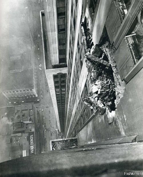 28 июля 1945 года бомбардировщик ВВС США B–25 «Митчелл», пилотируемый в густом тумане, врезался в северный фасад здания между 79 и 80–м этажами.