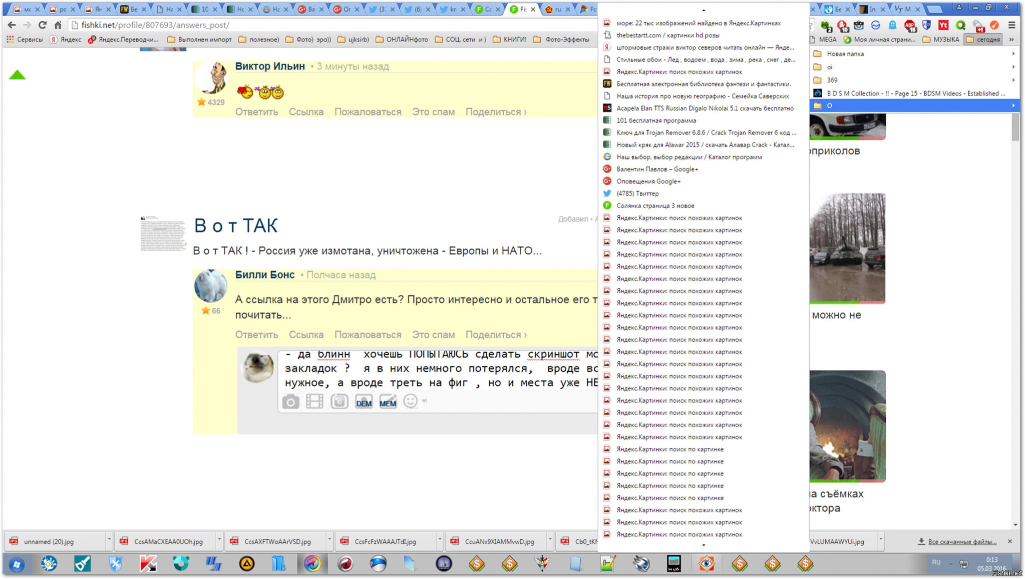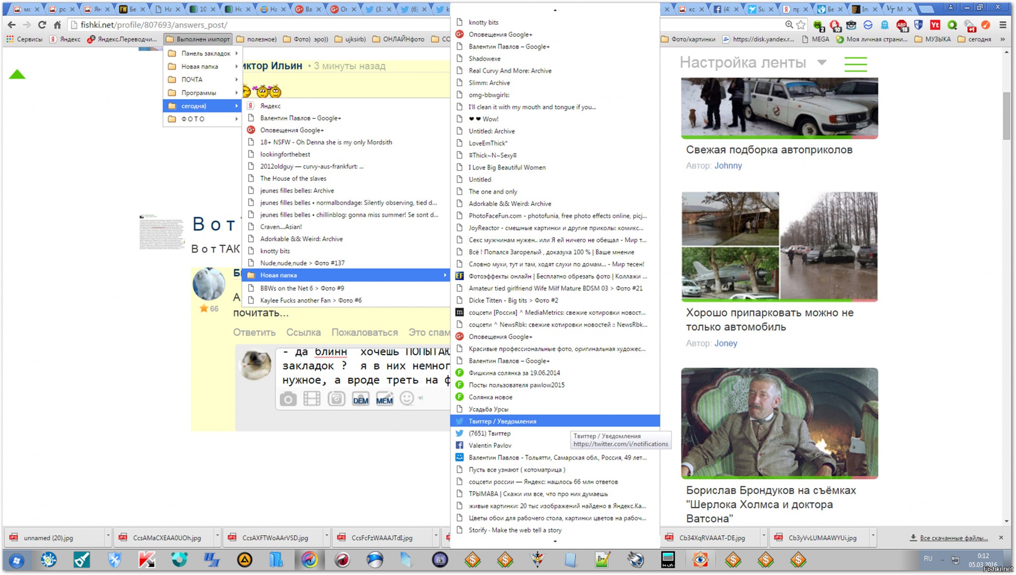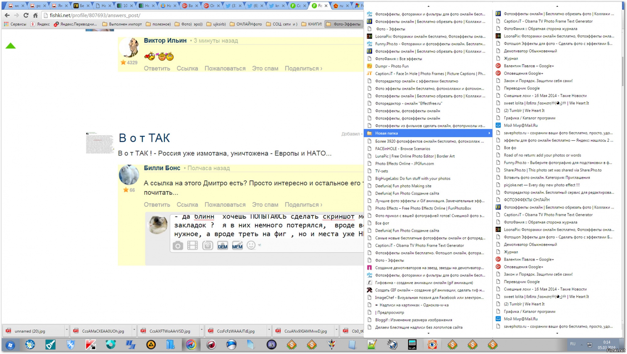 - да блинн хочешь ПОПЫТАЮСЬ сделать скриншот моих закладок ? я в них немного потерялся, вроде всё нужное, а вроде треть на фиг , но и места уже НЕТ !! -причём ЭТО в ЭТОМ браузере ! ( а у меня их 4 основных - на скриншотах их видно внизу - и если вначале как то пытался копировать папки.. - теперь просто создаю новые..