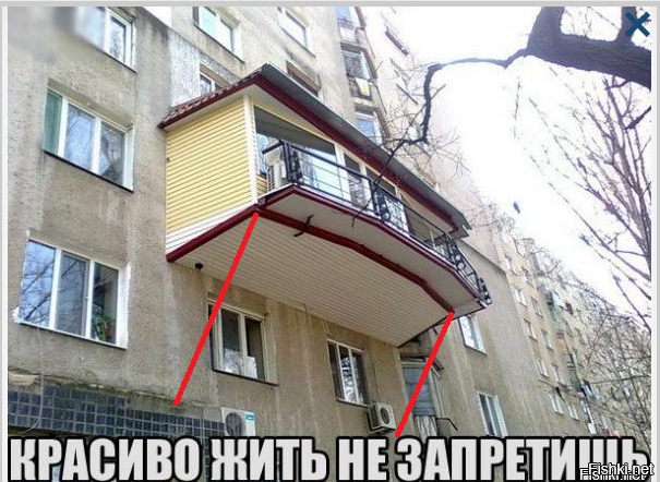 А вот у меня возник вопрос. А как эта конструкция держится? Дом панельный. Чисто забурили отверстия сверху и снизу и прикрепили раму? Дык, при чуть большей нагрузке, вся эта конструкция вместе с плитой вывалиться наружу. Адназначна, построено без каких-либо согласований.