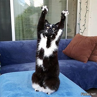 В Интернете то и дело появляются новые герои - порой четвероногие и имеющие какое-нибудь забавное качество. Дело небезызвестного Grumpy Cat продолжила еще одна звезда из семейства кошачьих: на этот раз пользователи социальных сетей делятся фотографиями кошки по кличке Кис, которая привлекла к себе внимание тем, что перед объективом камеры принимает позу "руки вверх!".