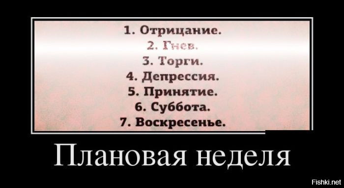- План на неделю. понедельник - все отходим от выходных. вторник - готовимся к среде. среда - работаем. четверг - репетиция пятницы. пятница - бухаем передвыходными. вопросы есть?