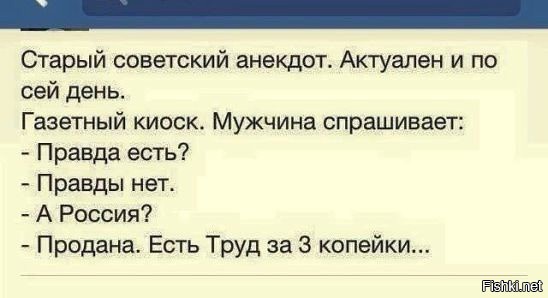 Какая свежая, актуальная шутка! Лет тридцать, как свежая!