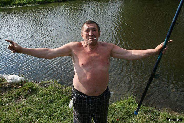 Вдруг поплавок задергался, забултыхался, мужик от радости подпрыгнул