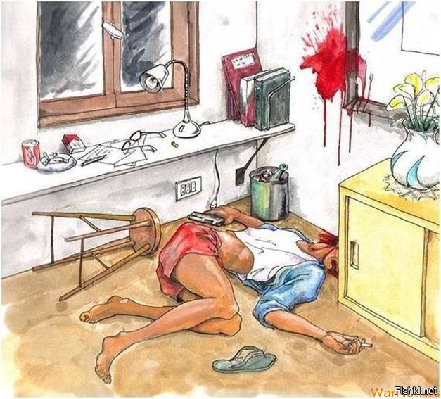3) стреляли в правый висок, так как крови мало с этой стороны , значит вылет был слева и на выходе отверстие больше и крови тоже.