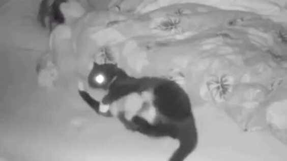 Кот проверяет, хозяева, вы как там, живые ещё, или как?