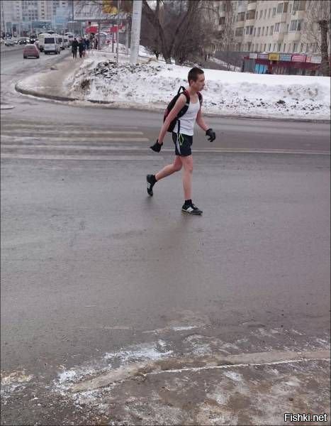 в свое время у нас в группе подобный закаленный перец был. все форсил при минус 30 в легких штанишках и рубашечке. потом с двусторонней пневмонией 2 месяца пролежал и начал одеваться, как все.