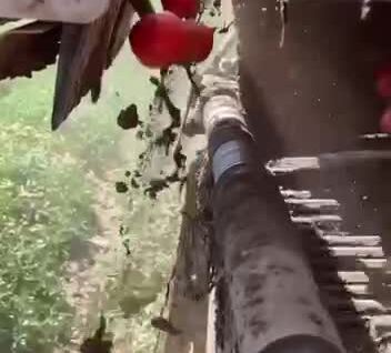 Это высокотехнологичная машина, которая движется по полю, собирает помидоры и с помощью оптических сенсоров автоматически отделяет их от земли, камней и других примесей, обеспечивая быструю и точную сортировку