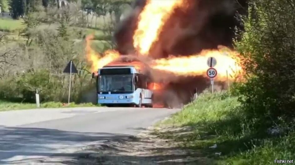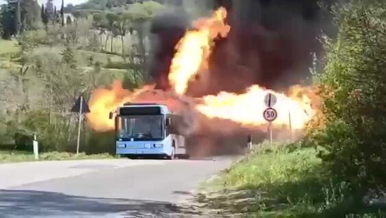 Пожарная охрана Перуджи (Италия) опубликовала видео, запечатлевшее пожар на борту автобуса Irisbus Iveco Cityclass, оборудованного ДВС и топливными баками CNG, установленными на крыше. Причины пожара не сообщаются, но в результате случившегося автобус превратился в огнемет, который извергал пламя в трех направлениях. Инцидент произошел в сельской местности, вдали от построек, а пассажиров в автобусе не было. Водитель вовремя выскочил из кабины и не пострадал, а сам автобус сгорел дотла.