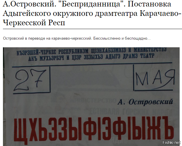 Афиша написана на черкесском языке, а не на абазинском. Сделаю себе скидку, так как я не носитель языка, а черкесский (кабардинский) и абазинский языки относятся к одной абхазо-адыгской группе языков, промахнулся не очень сильно.