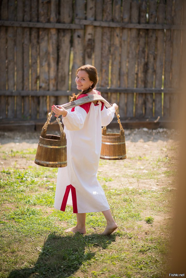 Красивая девка, но погляди, как она держит коромысло?! А если наполнить, действительно согнётся, только назад. ;)