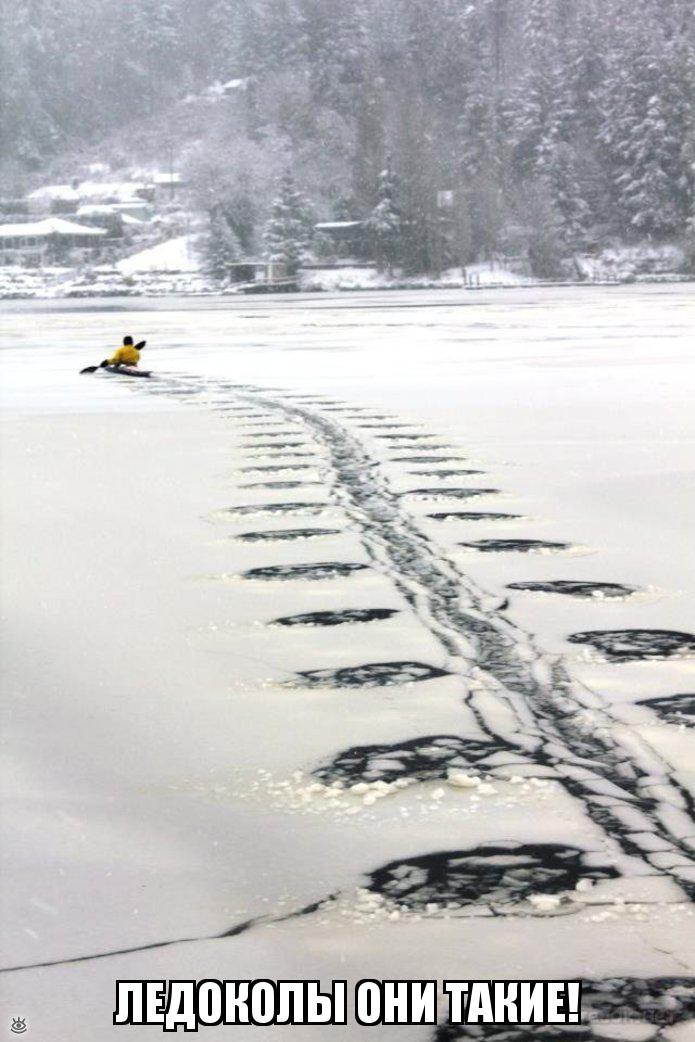 Хитер мужик! Заранее лунки для зимней рыбалки пробивает )))