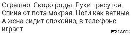Начались роды. Вызвали скорую. Приехала. У меня уже третьи роды. Схватки за схватками. Скорая мигалку включила, пробка, а мы по встречке… с мигалкой! Меня крючит уже, а мой муж сидит в окно смотрит, радостный гад ещё такой и говорит: «Зай, а мы по встречке едем!” Оставшиеся 10 минут я красочно представляла, как его сковородкой бью! Легче становилось.