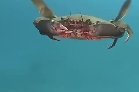 Песок за крабом спокоен, а перед ним пылит. Это потому что он на самом деле упал сверху и двигался задом