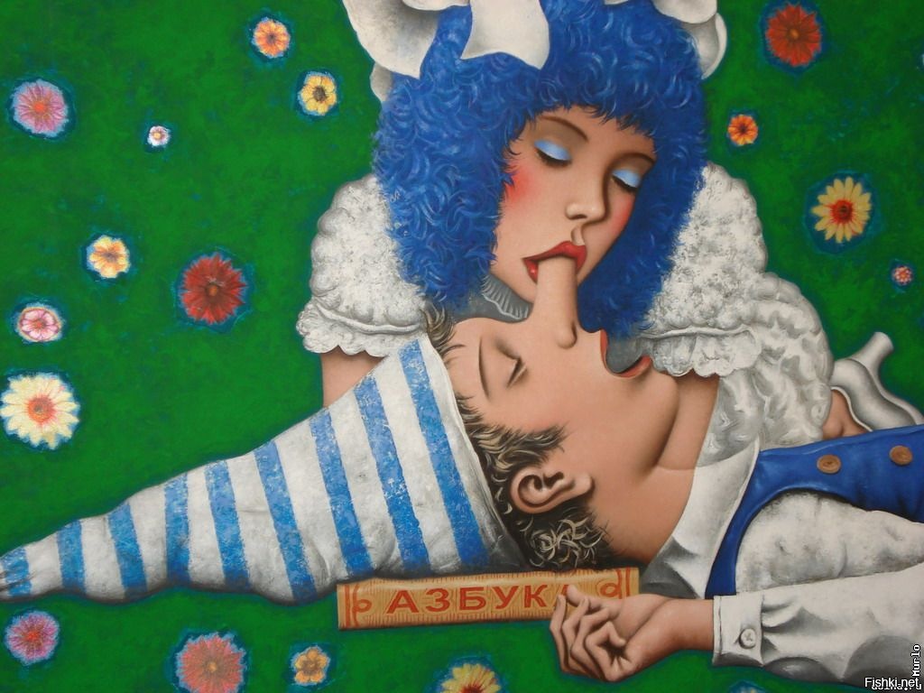 Судя по размеру носа Буратино, а также исходя из того, что по сути это заострённый деревянный кол, Мальвина не от удовольствия глаза закрыла, а просто совершила суицид, проколов себе нёбо и воткнув нос Буратино себе в мозг.