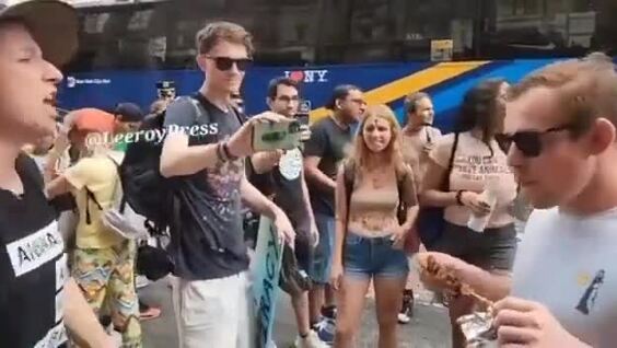 В Нью-Йорке парень с шашлыком пришёл на демонстрацию веганов-