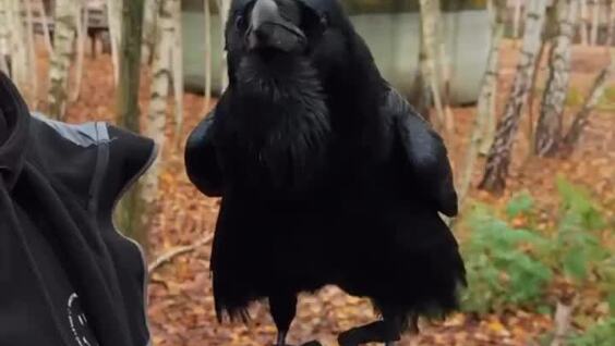 Ворон, который умеет говорить «Карлуша молодец!» и пародировать другие фразы человеческим голосом, живет в подмосковном Ступино.