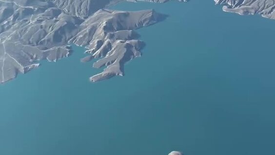 Вид с воздушного шара на Чиркейское водохранилище, которое разделяет Сулакский каньон на два независимых ущелья. Дагестан.
