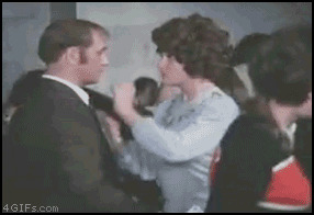 Она молча берет его за руку ведет, сажает в кресло и делает минет.