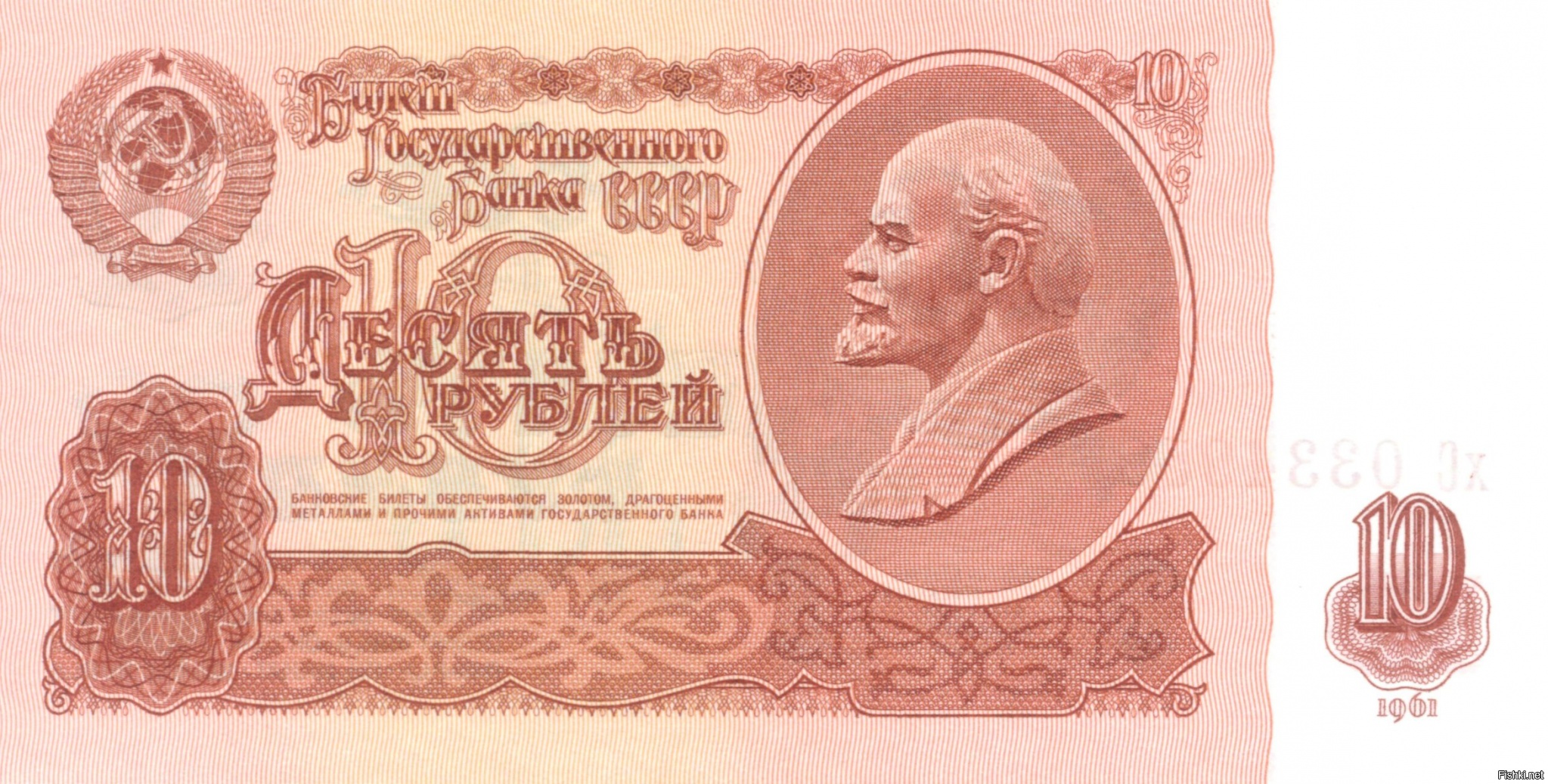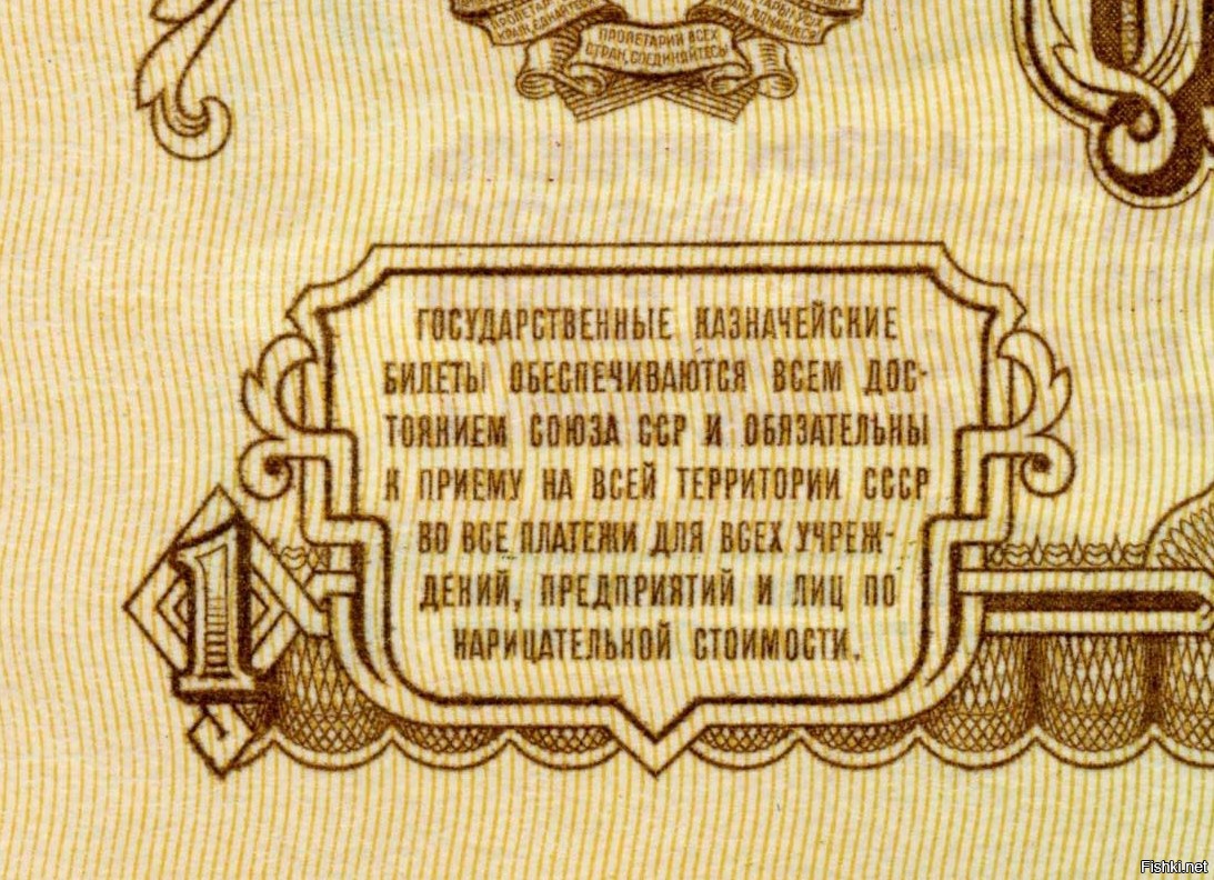 Вы ошибаетесь. Рубль был Государственным казначейским билетом, так же как трёшка и пятёрка. А 10, 25, 50 и 100 - это были "билет государственного банка". Так вот золотом обеспечивались "билеты государственного банка", а казначейские - достоянием СССР.