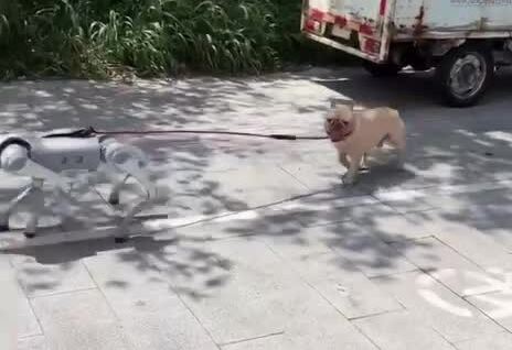 Началось: в Китае нашли собаку-робота, которая выгуливает... живую собаку.